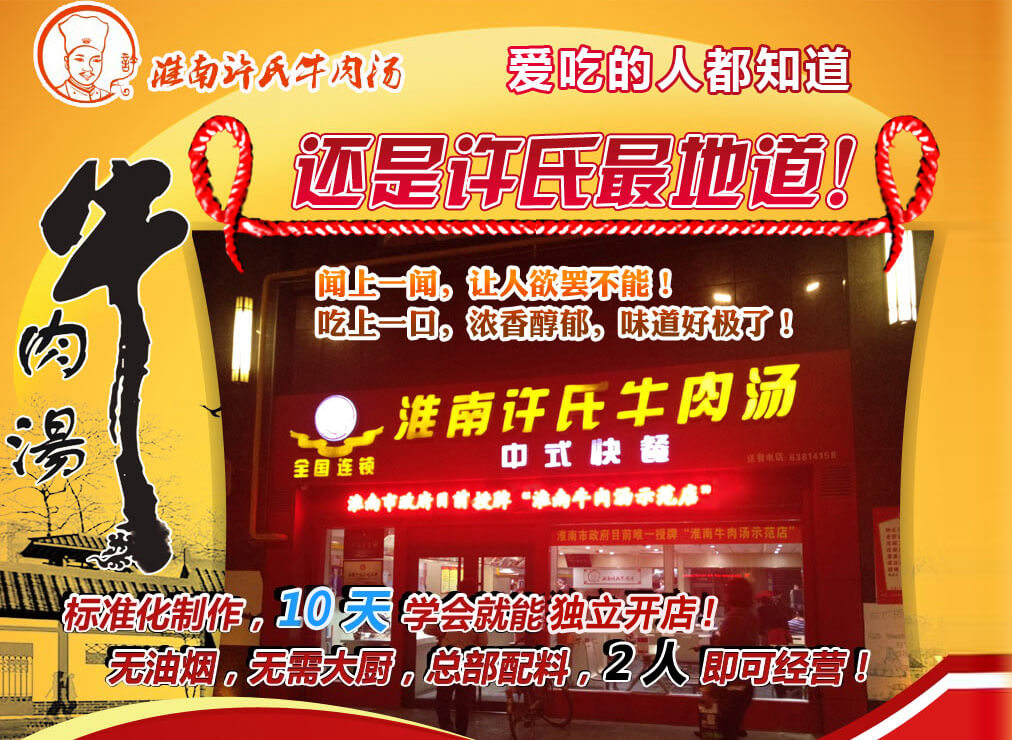 許氏淮南牛肉湯加盟專注制作快餐美食,種類之多,超出你的想象。搭配特色小吃和時(shí)尚飲品...